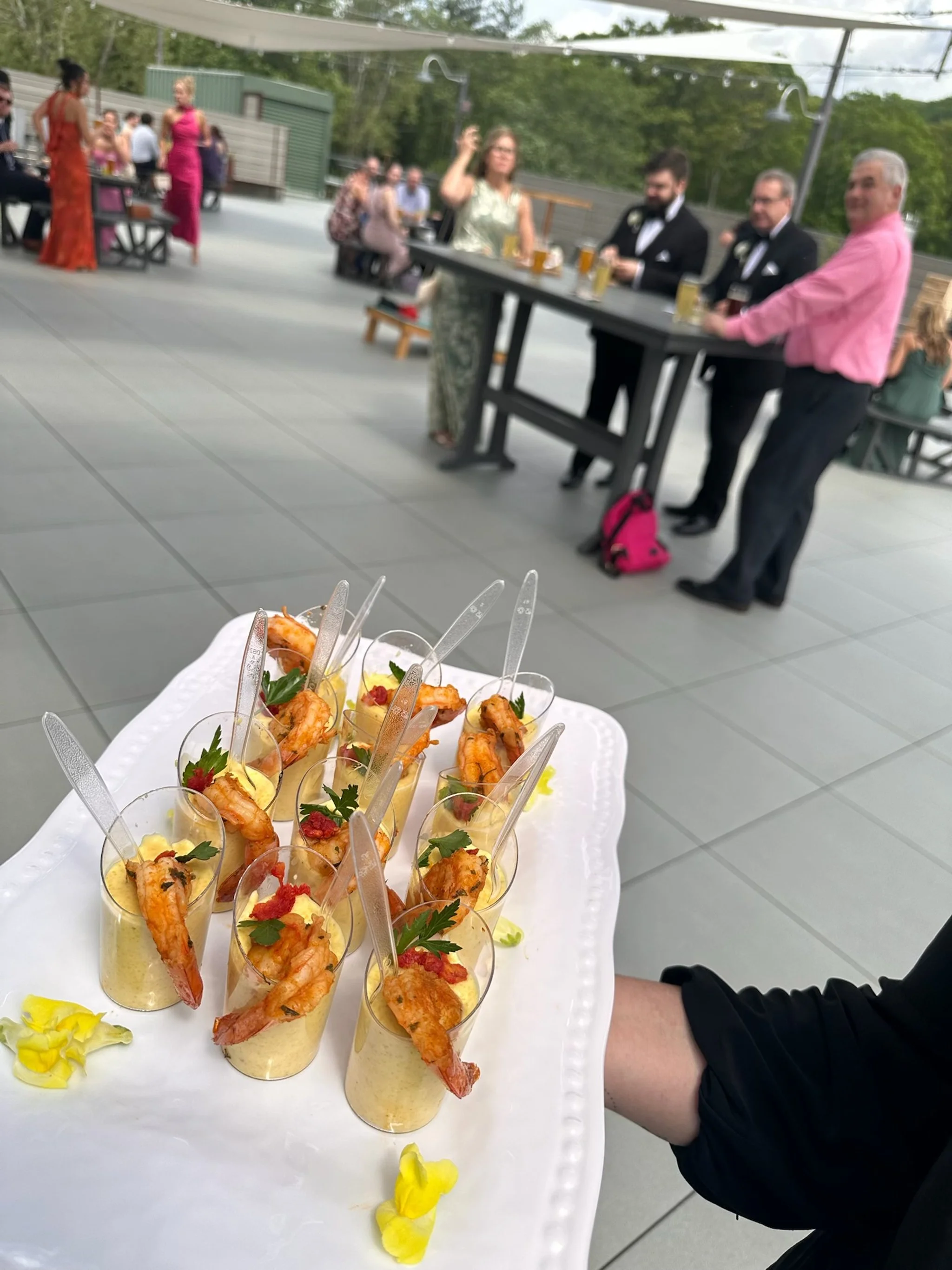 Smoked Gouda spread over a crisp grit cake, topped with bold Cajun shrimp. A Southern bite with serious flavor